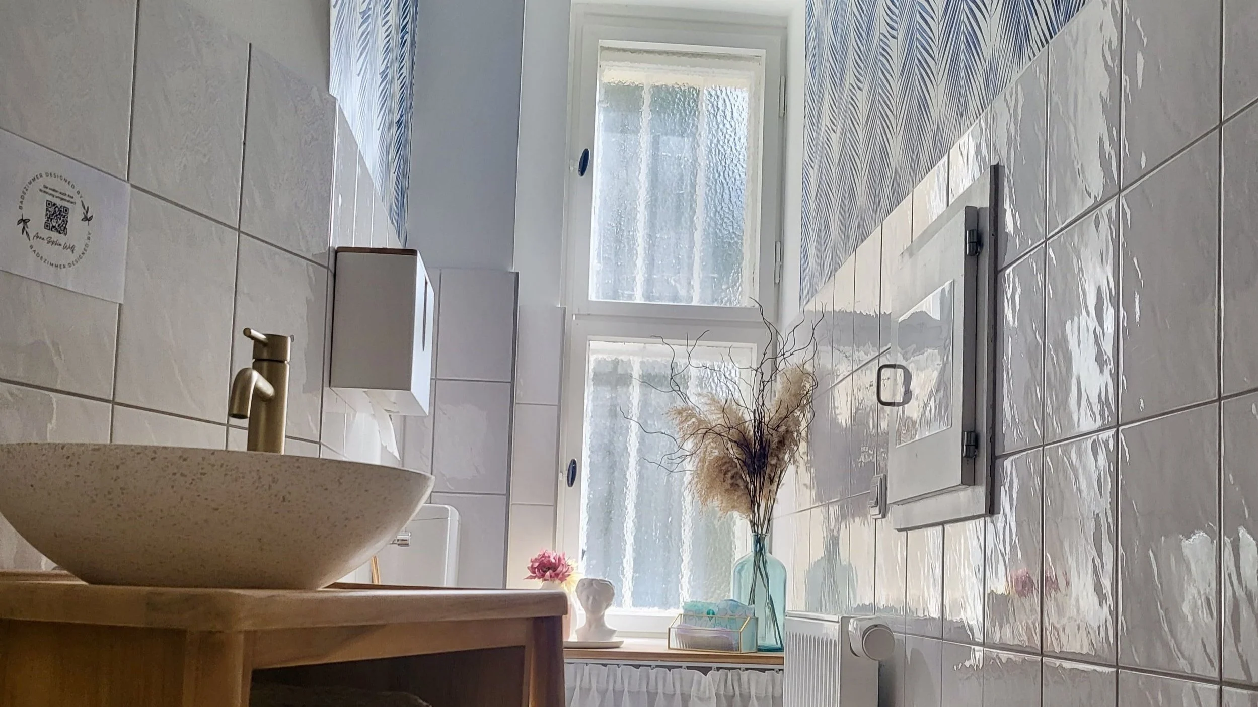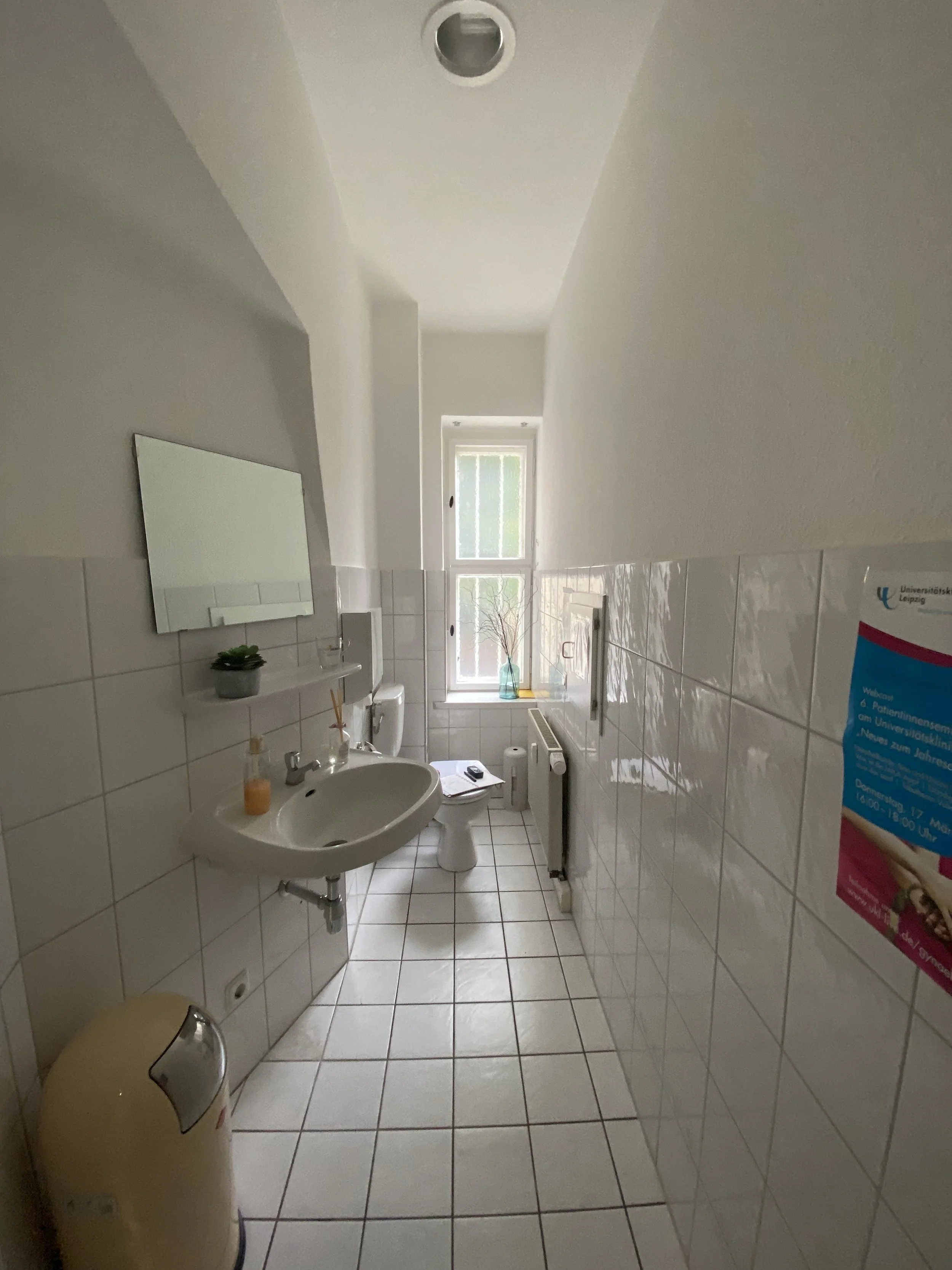 Die Arztpraxis wünschte sich eine Umgestaltung ihres Patientinnen Bades. Dabei sollte eine gemütliche Atmosphäre erzeugt werden, die Sicherheit und Vertrauen ausstrahlt. Weiterhin war der Anspruch, dass sich das Bad in die restlichen Räume und Farben der Praxis gut einfügt.