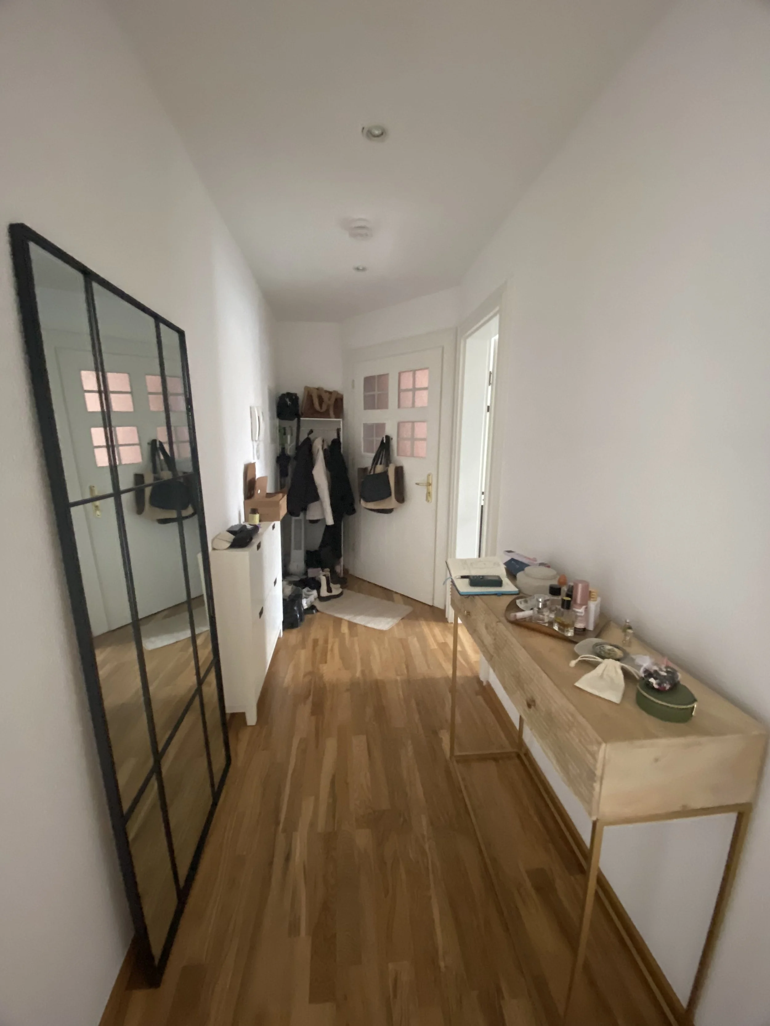Nachdem wir erfolgreich das Schlafzimmer der Kundin im Japandi-Stil eingerichtet haben, ging es nun mit dem Flur weiter. Die Kundin wünschte sich beim Betreten der Wohnung eine einladende Atmosphäre. Sie beschrieb die gewünschte Stimmung des Raumes mit den Worten: klar, lieblich, natürlich, gemütlich und harmonisch. Gleichzeitig sollte der Raum aber natürlich trotzdem auch zum Schlafzimmer passen. Aus diesem Grund verbindet die beiden Räume die Verwendung des Skandinavischen Stils.